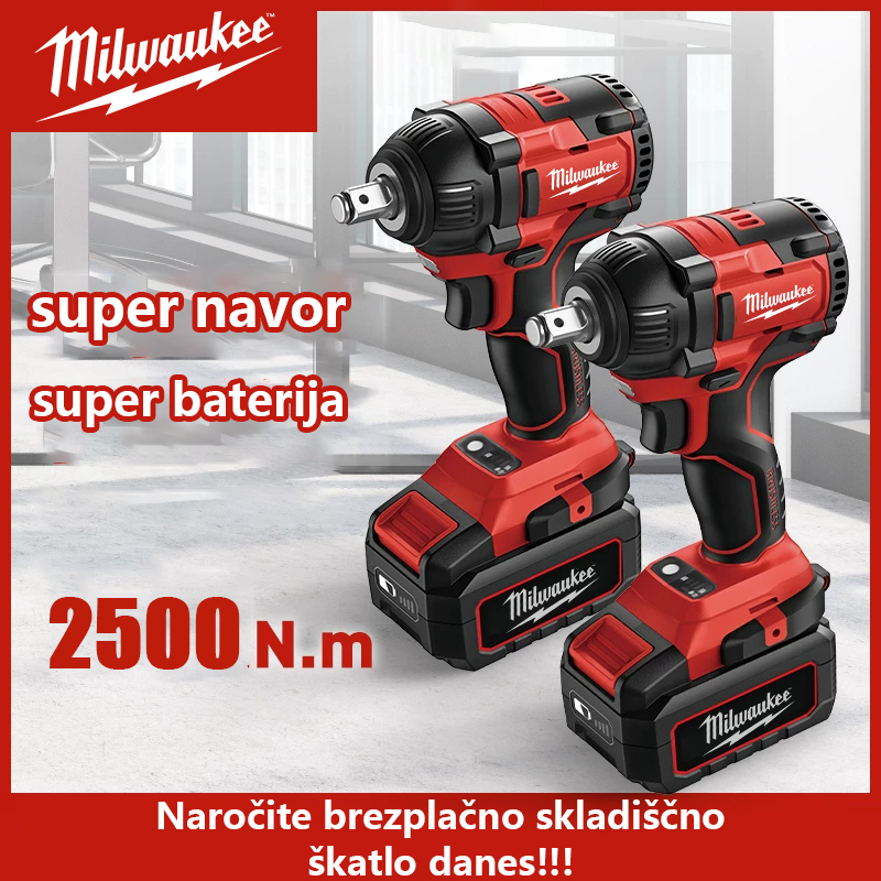 Brezkrtačni električni ključ Milwaukee, polnilna litijeva baterija, 2500N.M visok navor
