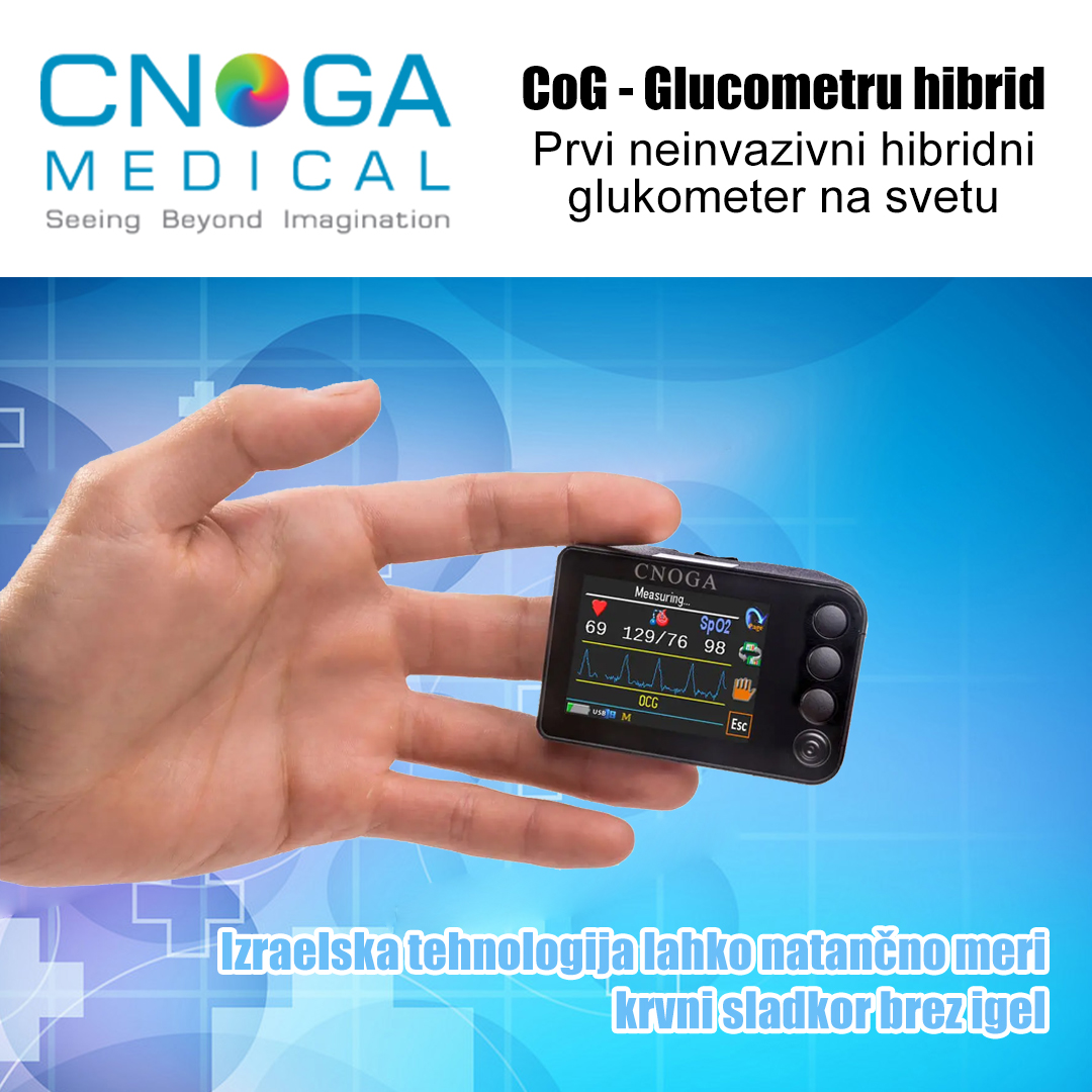 Neinvazivni merilnik glukoze v krvi CNOGA, za odvzem krvi ni treba zabadati igle