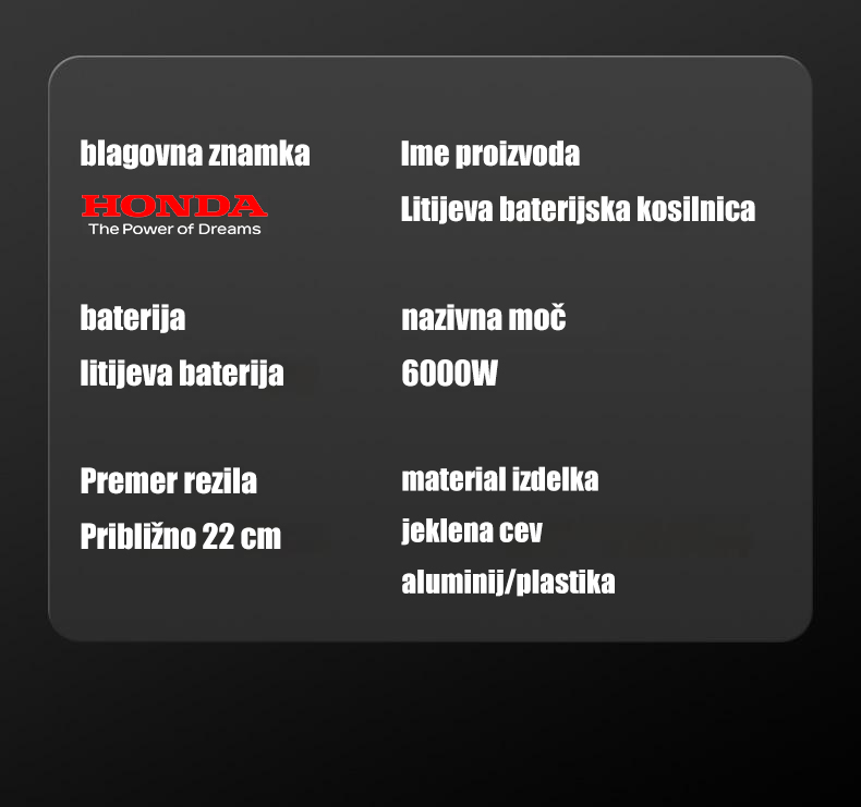 HONDA nov model litijeve baterijske kosilnice, popolnoma nadgrajena, 6000 W visoke moči